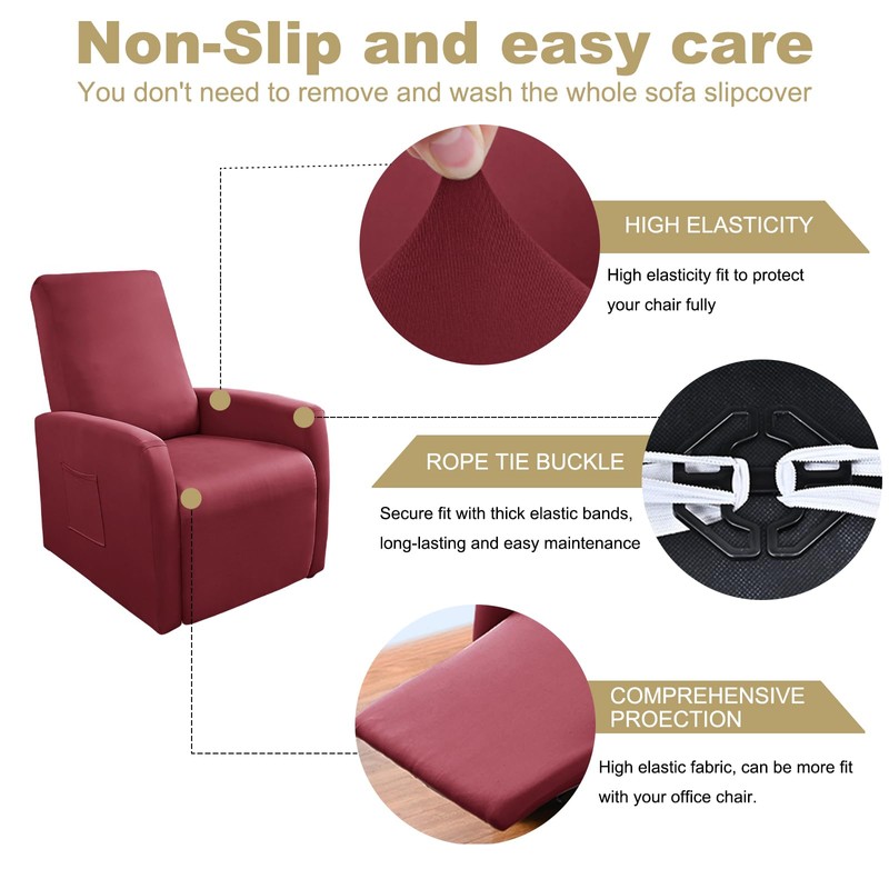 - Perfect Fit: GOSTADY stretch recliner sofa cover has undergone a design upgrade, mainly tailored for best-selling compact recliners or home theater seating configurations.Recliner chair covers for reclining chair featuring elastic bottom on every piece covers, which can cover the chair couch all around. Besides, new desigh with fixed rope under the recliner can make recliner covers stay in place without moving.