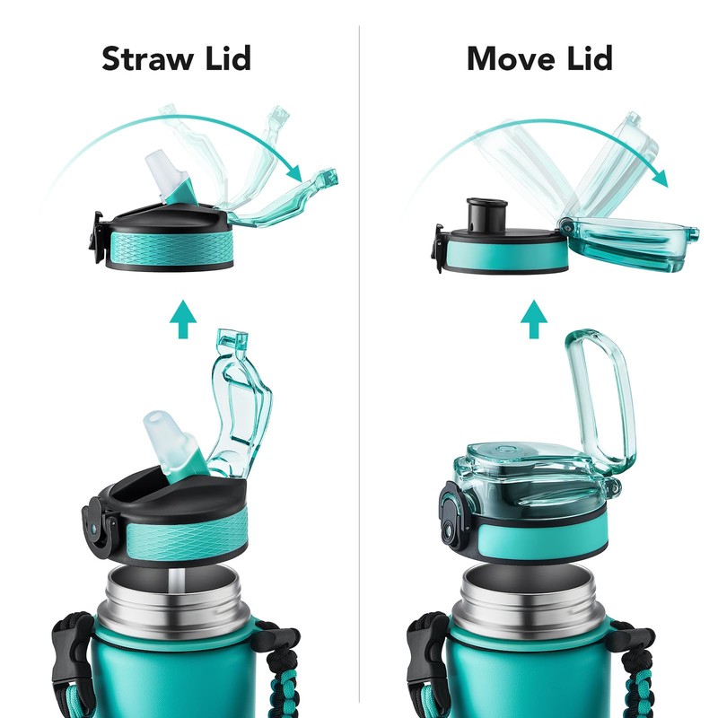 - Insulated water bottle 24 oz: 24 oz insulated water bottle has a matte finish and comes with 2 lids (Lid with Straw/No Straw) and a Paracord handle for easy portability; Its wide mouth makes it easy to fill, pour, and clean, and the leak-proof cap ensures worry transport.