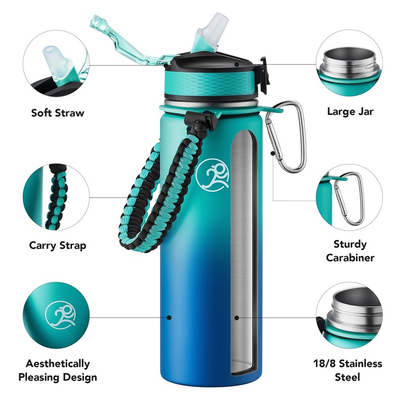- Double-Wall Vacuum Insulation: Stainless steel water bottle’s inner wall is made from 18/8 food-grade stainless steel, and the outer wall is 201 stainless steel; The sports water bottle is non-toxic, odorless, durable, and easy to clean.