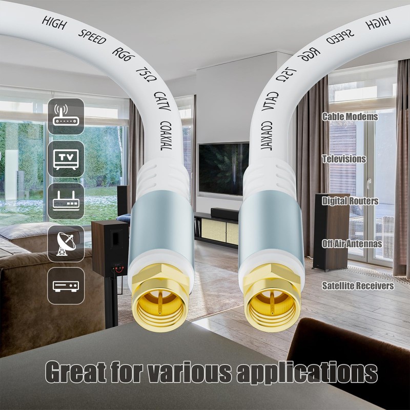 GOSYSONG White RG6 Coaxial Cable 30ft Super Speed Internet, Broadband and Digital TV Aerial, Satellite RG6 Coaxial Extension Cable