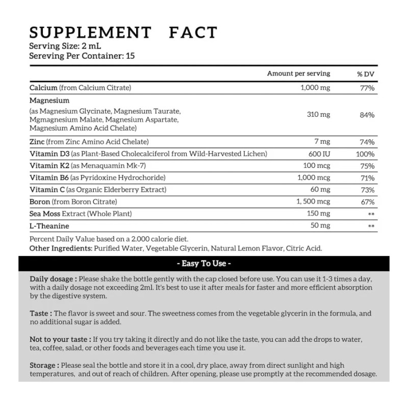 - 🥛 Fortalece Huesos y Dientes: Calcio, magnesio, vitamina D3 y K2 trabajan juntos para mejorar la densidad ósea.