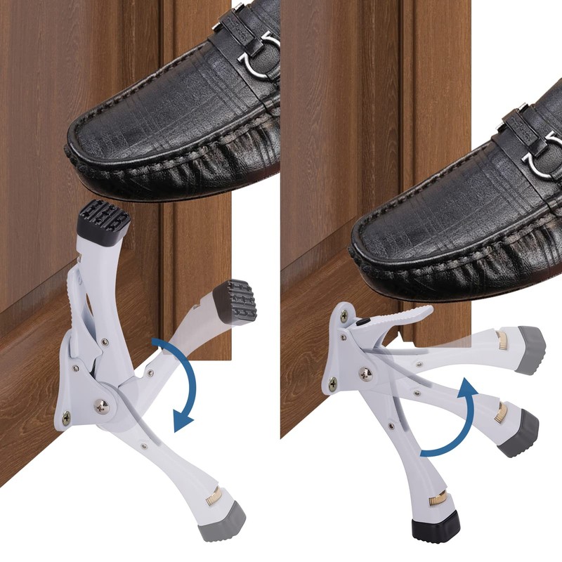- 【Easy to Use】The door stoppers just step on it for instant release, no manual lifting.They are door stops for bottom of door, you don't have to bend down and operate with your hands every time. Door holder will attach to the door and can be engaged and disengaged with one foot.