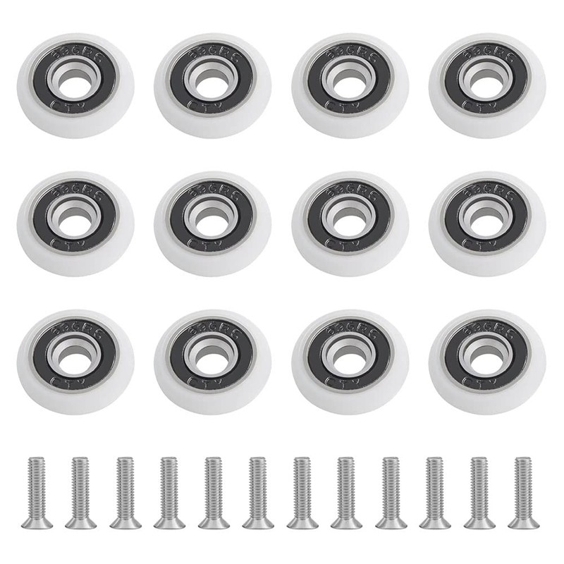 Gotetiso Pack of 12 Shower Cubicles Rollers Sliding Door Glass Door Rollers 23 mm Plastic Ball Bearing Guide Roller for Shower Cubicle Door with Screws