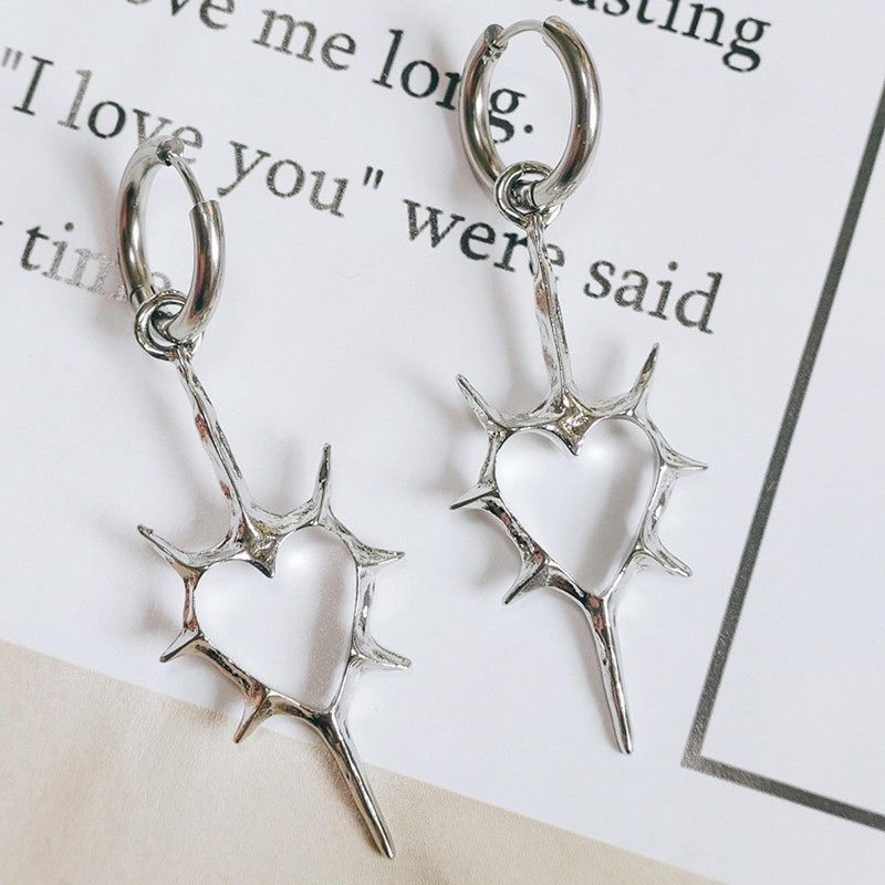 Goth Earrings for Women Silver Hoop Western Punk Dangle Drop Chunky Heart Fun Jewelry Gift (Heart Silver)