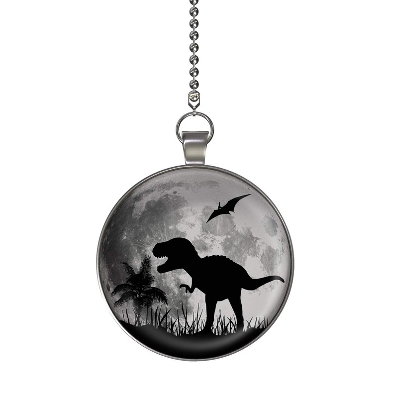 Gotham Decor T-Rex Tropical Moon Dinosaur Glow in The Dark Ceiling Fan and Light Pull Chain Pendant Single Sided