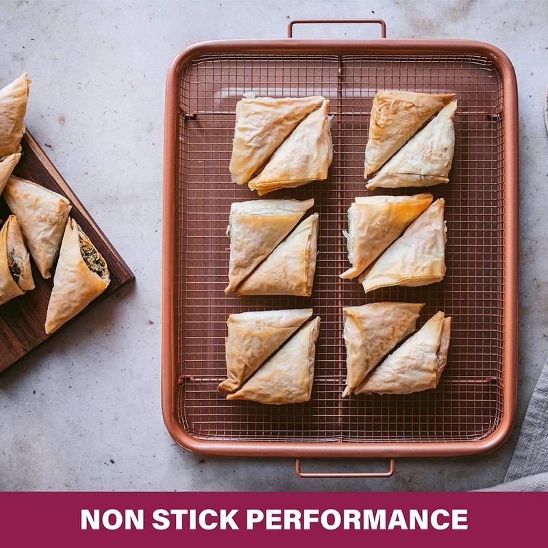 Gotham Steel Crisper Tray for Oven, 2 Piece Nonstick Copper Crisper Tray and Basket, Air Fry in your Oven, Great for Baking and Crispy Foods, As Seen on TV – Extra Large Size, 13.4” x 11.4”