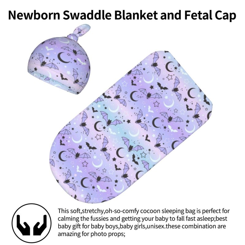 Gothic Bat Goth Baby Stuff Swaddle Blanket With Beanie Set, Star and Moon Print Swaddle Sack Newborn Sleeping Sacks For Girls Boys