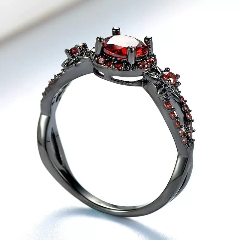 Gothic Black Rings Purple Red Crystal Zircon Diamond Wedding Engagement Ring Size 5-10, 5, Non-Precious Metal, No Gemstone