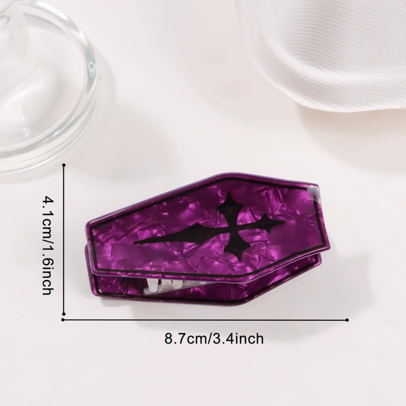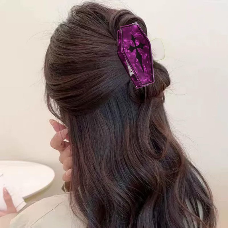 Gothic Coffin Hair Clips Halloween Deep Purple Coffin Hair Claw Clips Non-slip Jaw Clips Large Acrylic Hair Barrette Y2K Retro Strong Hold Hair Clamp Clip Funny Hair Accessories for Women Hair Styling