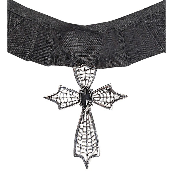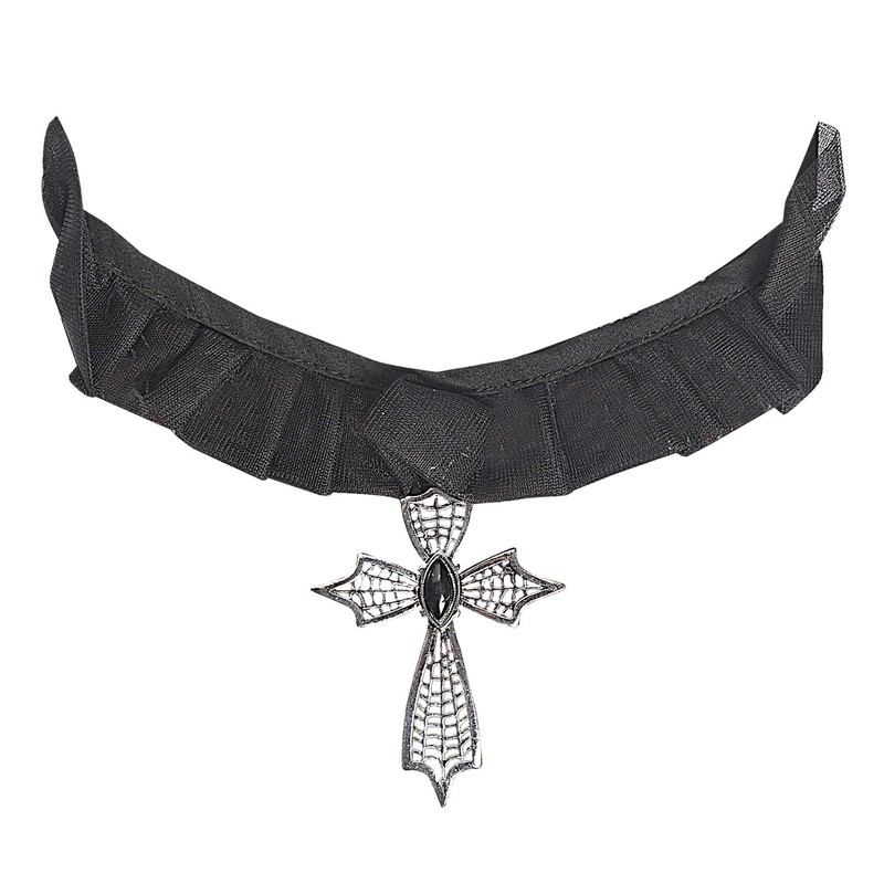 Gothic Cross Choker withBlack Gem Accessory for Fancy Dress