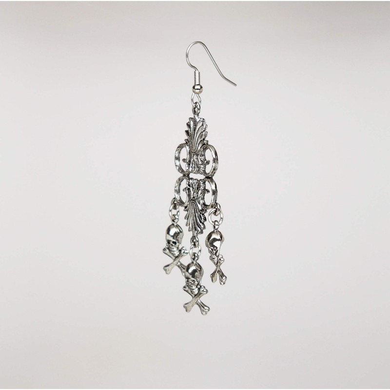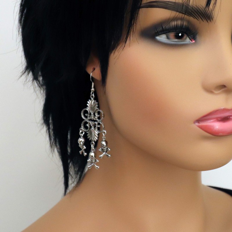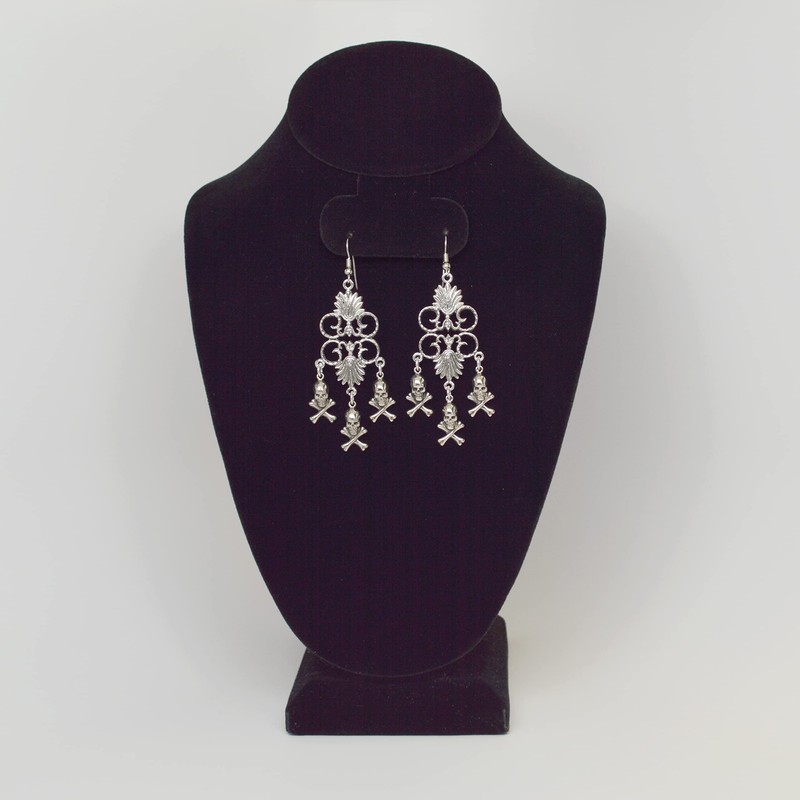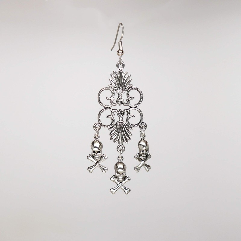 Gothic Skull and Crossbones Medieval Renaissance Chandelier Dangle Earrings S...