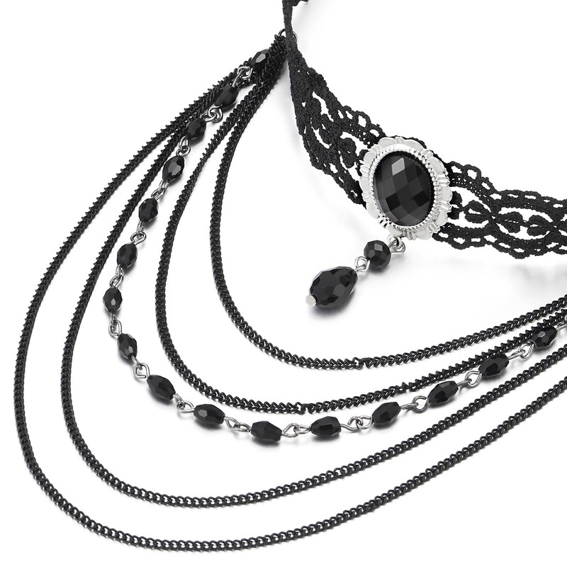 - Gothic Victorian Nostalgic Black Lace Choker Necklace with Long Dangling Teardrop Beads and Chains(CA)