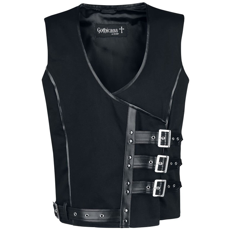 Gothicana by EMP Men's Black Vest with Buckles, black