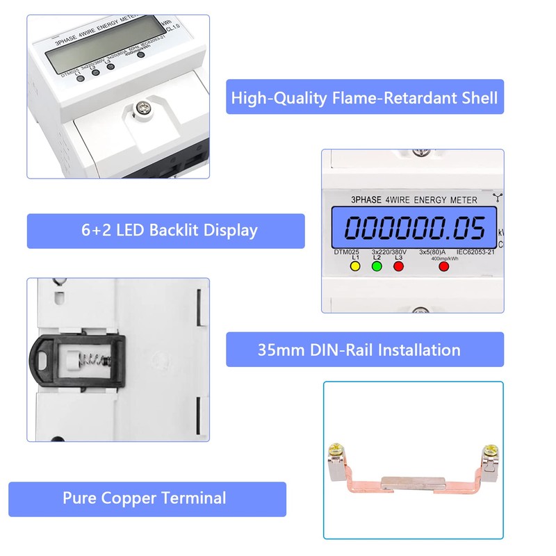 • Advanced technology: the 35 mm DIN rail of the three-phase counter is easy to install and has the properties of anti-electromagnetic interference, low power consumption, high precision, high stability and theft protection.