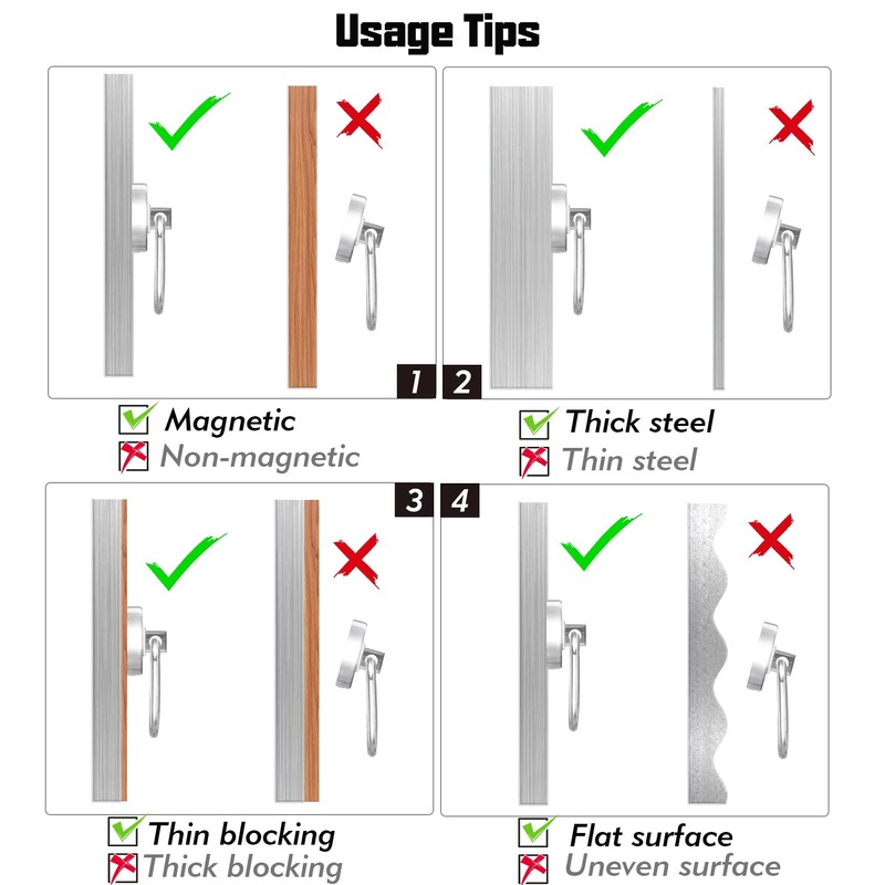 - Multi-purpose: magnetic hooks are practical storage solutions for small spaces, flexible for indoor and outdoor use, ideal for kitchens, bathrooms, cabinets, grills, garages, warehouses, tool shelves, gyms and more.