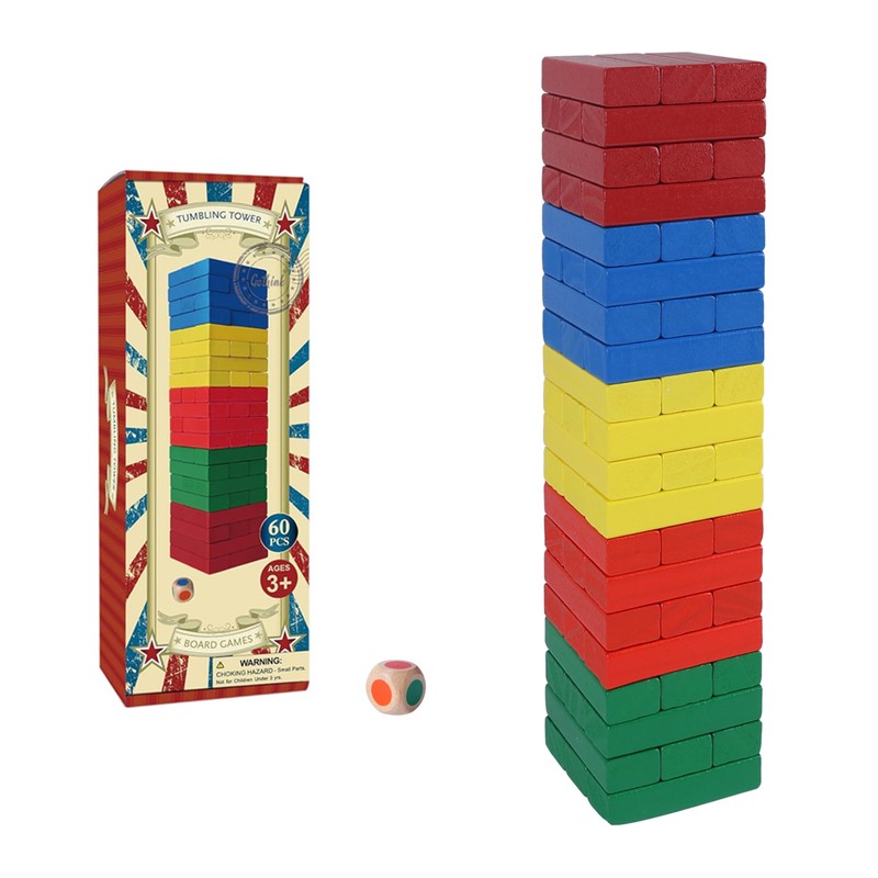 - 【CLASSIC STACKING GAME】The wooden blocks game made of premium wood that provides long-lasting durability won't receive damage after each tumble of the tower. Build the tower, roll the dice, and remove the matching block. Promotes coordination, hand-eye coordination and fine motor skills for children of all ages