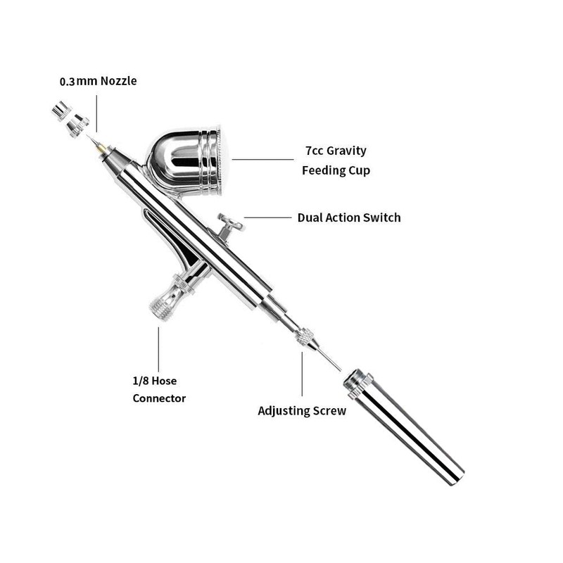 Gravity Feed Dual-Action Airbrush. Our Airbrushes are perfect for drawing, painting, cake decorating, cosmetics, nail art, tanning, temporary tattoos, auto-body works, crafts and many other hobbies.