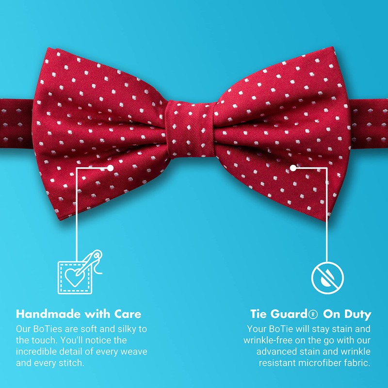 GoTie Men's Dotted Bowtie - Bow Ties Ready to Wear - Pretied Adjustable Ties for Short or Tall Men - Crimson Dotted