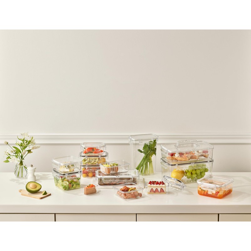 - Transparency and Safety: Just like glass, our airtight fruit storage boxes offer crystal clear transparency so you can easily see what's inside. Above all elase, we prioritize your family’s health. That's why our kitchen storage organizers (including lids) are made from 100% BPA-free Tritan material. The same material used in baby bottles ensures the safety of all cooking activities.