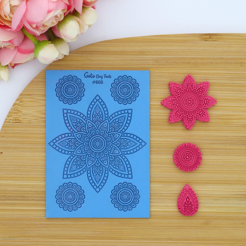 GOTO CLAY TOOLS Mandala Texture sheets for polymer clay with Cutters, Achieves The Same Texture as a Polymer Clay Roller, Mandala Texture mat for polymer Clay โ€“ TM-605