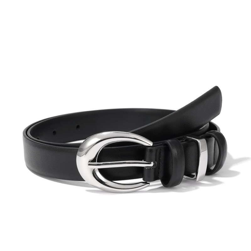 GOTOANT Women Leather Belts for Jeans Ladies Thin Western Waist Belt for Dress silver Buckle (black 39)