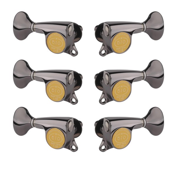 Gotoh Mini 510 3+3 Guitar Tuners with Metal Knobs, Cosmo Black