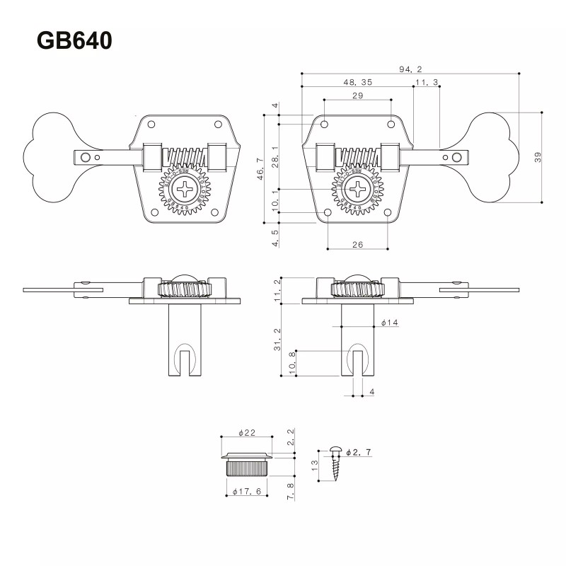 GOTOH NEW Gotoh GB640 Super Light Weight 4-String Bass Guitar Tuners Tuning Set - GOLD
