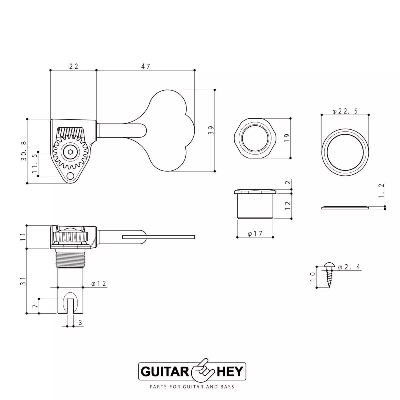- Compact Bass Tuners w/ open-gear for smaller peghead
