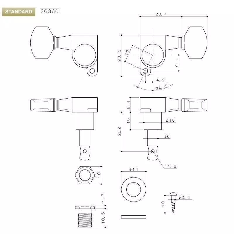 GOTOH NEW Gotoh SG360-M07 LEFT-HANDED 6-In-Line Mini Tuners IVORY Buttons, COSMO BLACK