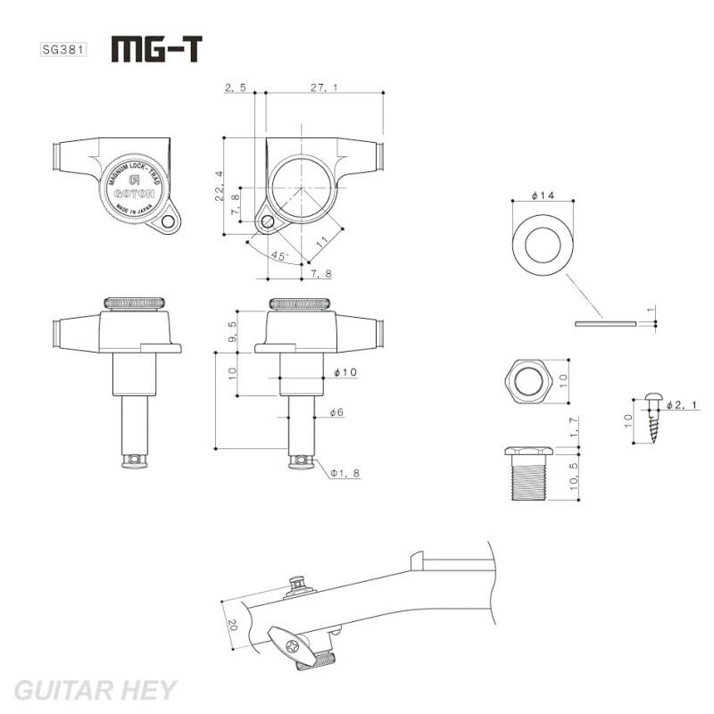 Gotoh SG381-20 MG-T MAGNUM LOCK-TRAD MGT Set L3+R3 w/ screws 3x3 - BLACK