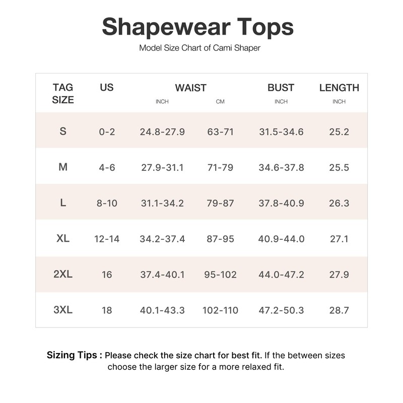 - Warm Tips for Shapewear Tank Top: This shapewear tank for women is longer than the normal tops, it is a good choice to tuck into jeans or skirts. The tummy control shapewear cami top is available in sizes ranging from S to 5XL, catering to women of all body types. For the best results, please take a moment to refer to our detailed size chart of body shaper tummy control and measure yourself carefully before ordering