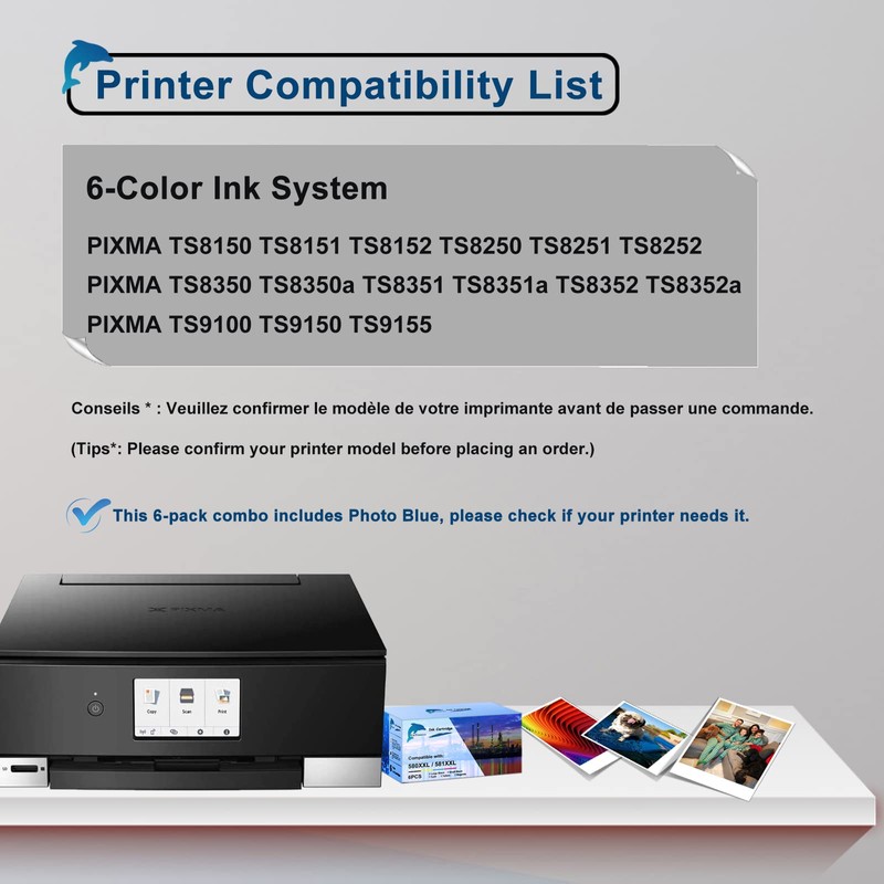 • Lieferumfang: 1PGBK 1Schwarz, 1Cyan, 1Magenta, 1 Gelb, 1 Foto Blau, 6 kompatible Tintenpatronen als Ersatz für Canon 581 580 XXL Multipack (nicht Original).
