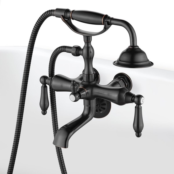 gotonovo 3 3/8 Vintage Bathtub Filler Wall Mount Clawfoot Tub Faucet Shower Kit with Handheld Shower 2-Functions Double Level Handle Modern Telephone Handheld Shower Oil Rubbed Bronze