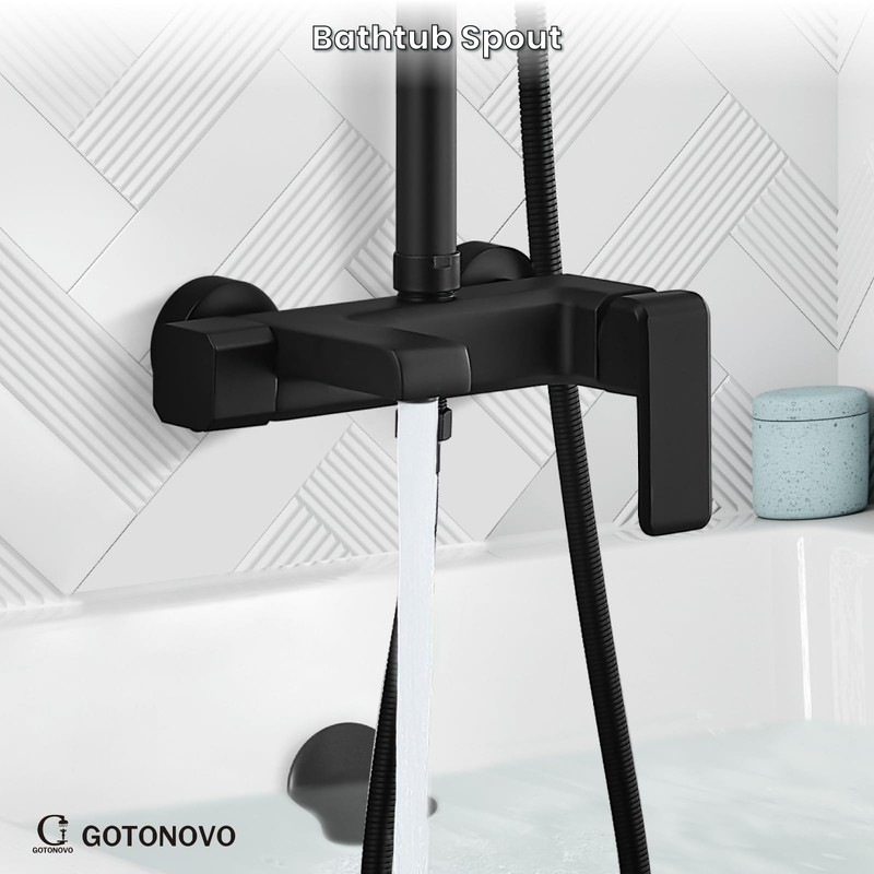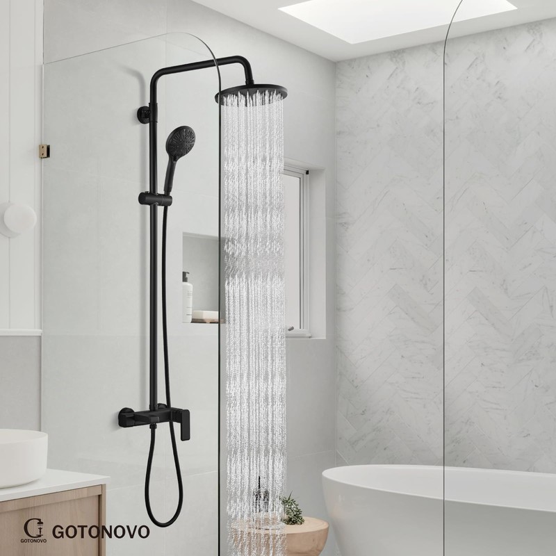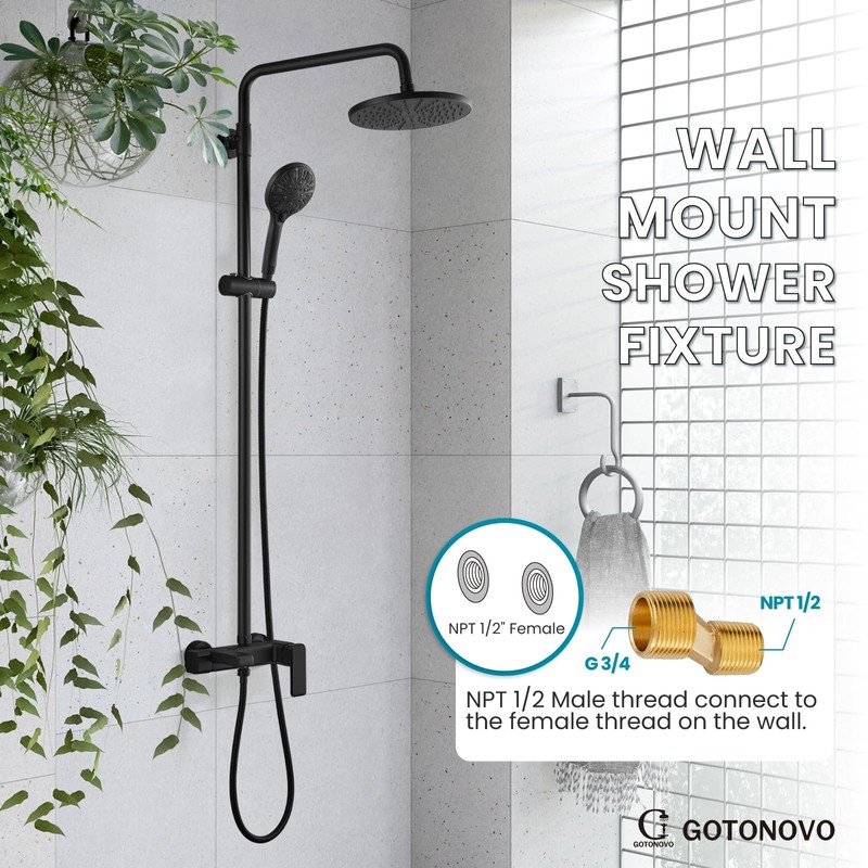 gotonovo Matte Black Exposed Shower Fixture Triple Function 8 Inch Rainfall ABS Shower Head and Tub Spout Shower System Combo Unit Shower Head and Handle Set, Round Handheld Spray
