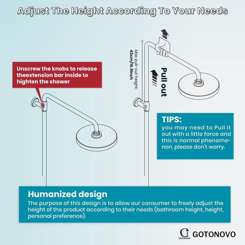 - Very easy to Install:Surface mounted,easily retrofit your existing shower without a remodel.Come with all the mounting hardware and installation instruction.If want tub mount,need to buy the extra purchase :3-3/8" adapter adjustable swing arms for tub mount