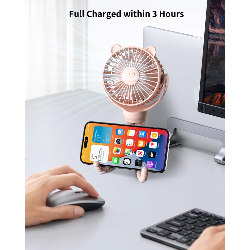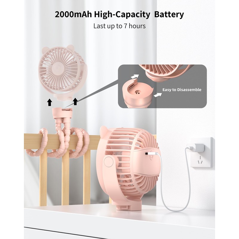 GOTOTO Baby Stroller Fan, Rechargeable Portable Fan with 2000 mAh Battery Operated,3 Wind Speed,360-Degree Rotation,Ultra-Low Noise Level,Safe mini fan for your baby