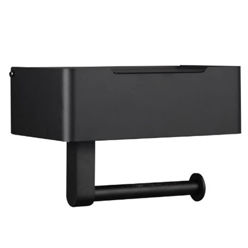 GOTOTOP Caja de Pañuelos, Soporte para Gigién de Acero Inoxidable, Portarrollos de Higiénico de Múltiples, Pulido a Mano de Montado en la Pared Borde con Estante para Rollos, Negro