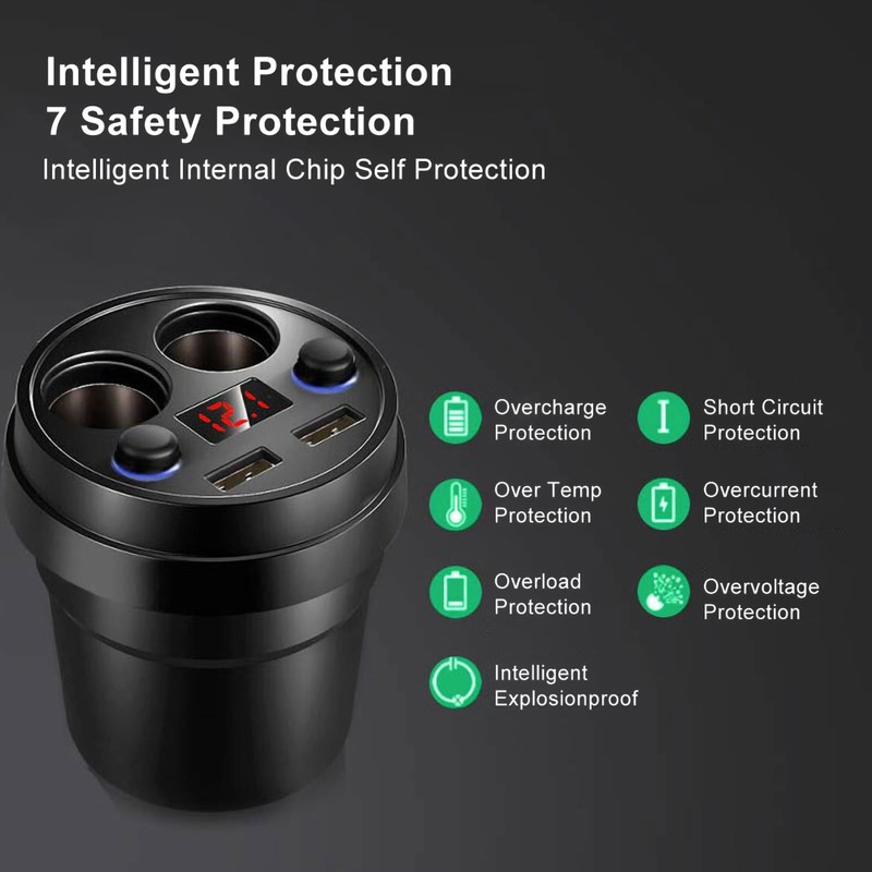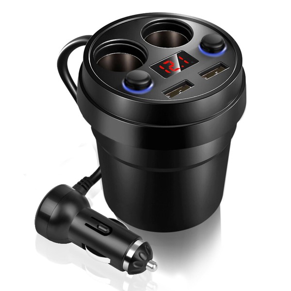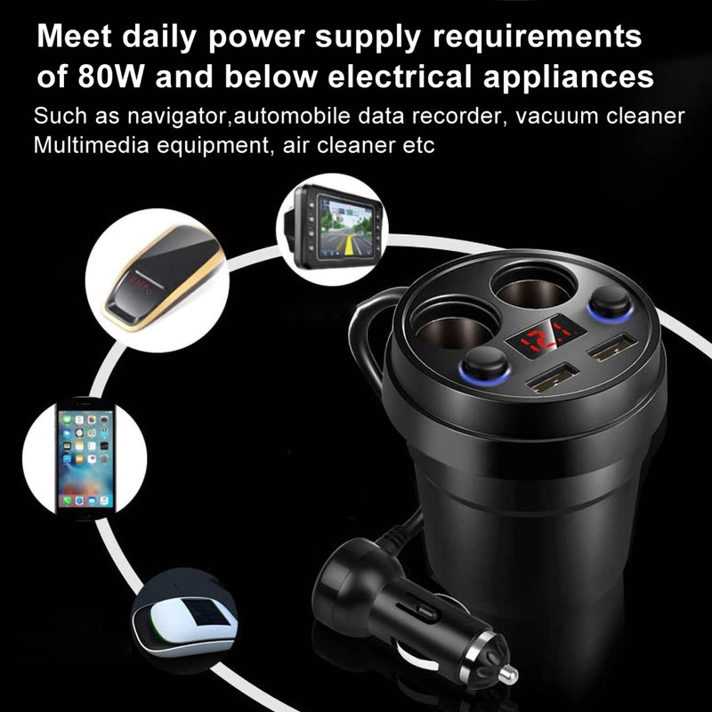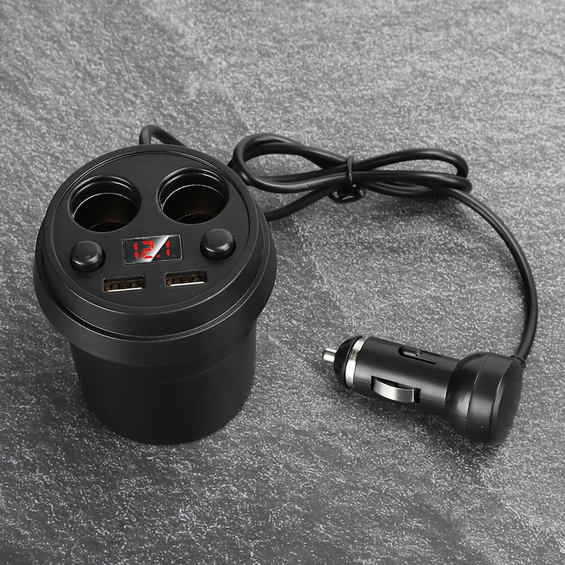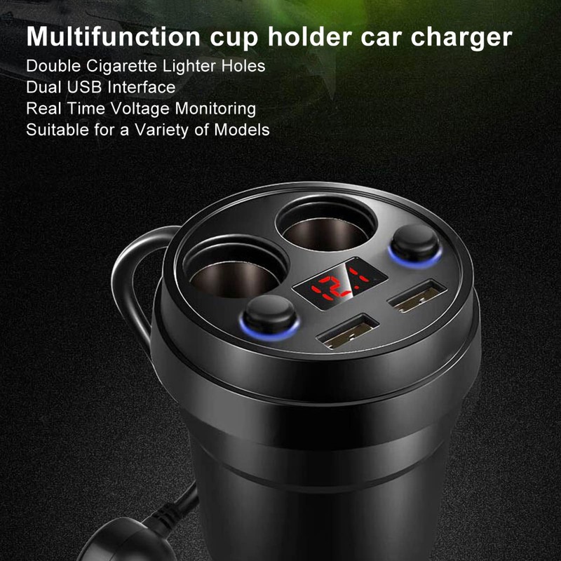 1. Cargador de automóvil con portavasos multifunción, orificio doble para encendedor de cigarrillos, USB dual, monitoreo de voltaje en tiempo real, no elija el modelo de automóvil, voltaje amplio general, adecuado para muchos tipos de modelos, se puede usar 12V-24V.