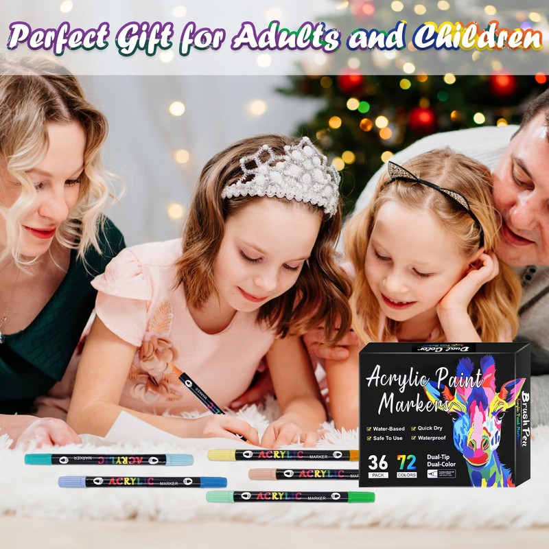 - ❀[Acrylic Paint Pens Set] You will get 36 pack dual tip rock painting pens in 72 different colors. Each acrylic color pencil has two 1-5mm round tip in different colors. It can meet the artistic needs of professionals and amateurs alike.