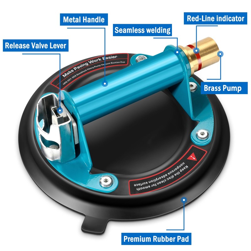 • Widely Used: 8'' all metal heavy duty hand-held vacuum lifting plates fast attachment on flat, smooth, nonporous surfaces. This vacuum suction cup is excellent for lifting and moving materials like large glass, tile,aquarium, furniture,plastics, metal, stone slabs, and appliances,which is a great choice for lifting items.