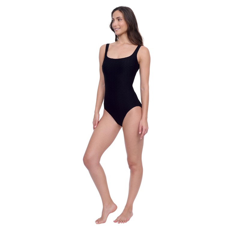 Gottex Women's Standard Charcoal Textured Round Neck Tank One Piece Bathing Suit with Removable Soft Cups Swim Essential