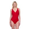 Gottex Women's Standard Lattice Red V-Neck Surplice One-Piece Bathing Suit with Soft Cups Tummy Control and Adjustable Straps Swimwear