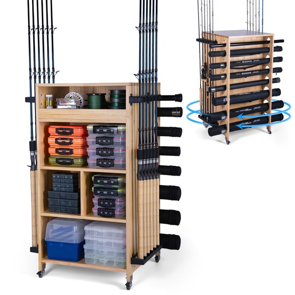 Goture Fishing Rod Holders for Garage, 360 Degree Rotating Pole Holders Rod Rack Storage up to 12 Rods or Combos Tackle Gear Equipment Organizer Fishing Storage Cabinet for Men Women