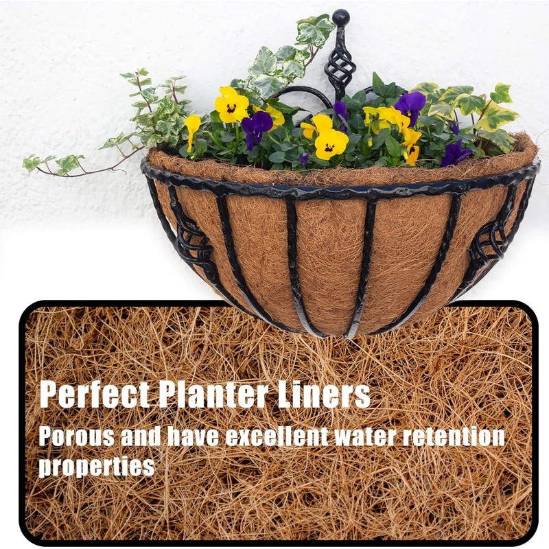 - Perfect planter liners: coconut liners are porous and have excellent water retention capability that allows air to circulate around the roots and keeps the soil moist for a long time. This promotes healthy root growth and prevents the soil from solidifying.