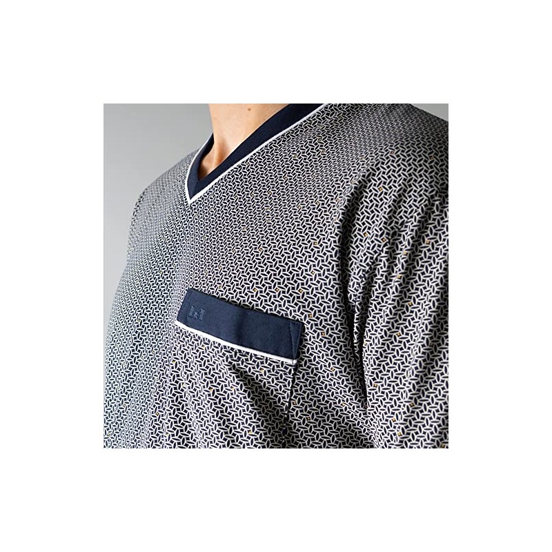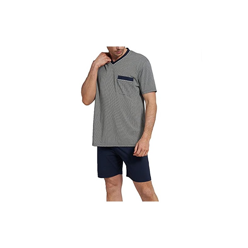 Götzburg Men's Pyjamas Short V-Neck | 1 Piece | 452085 (50, Navy/Blue Patterned), Navy / Blue Patterned