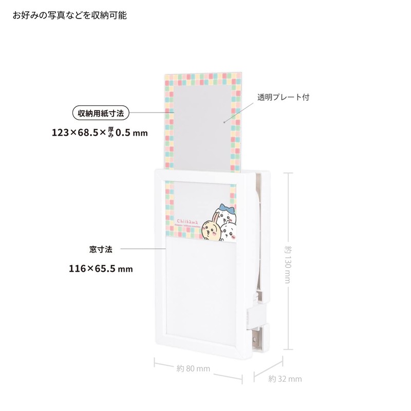 - The front is a photo frame to display your favorite photos. (Storage paper dimensions: Approx. 4.8 x 2.7 x 0.02 inches (123 x 68.5 x 0.5 mm)
