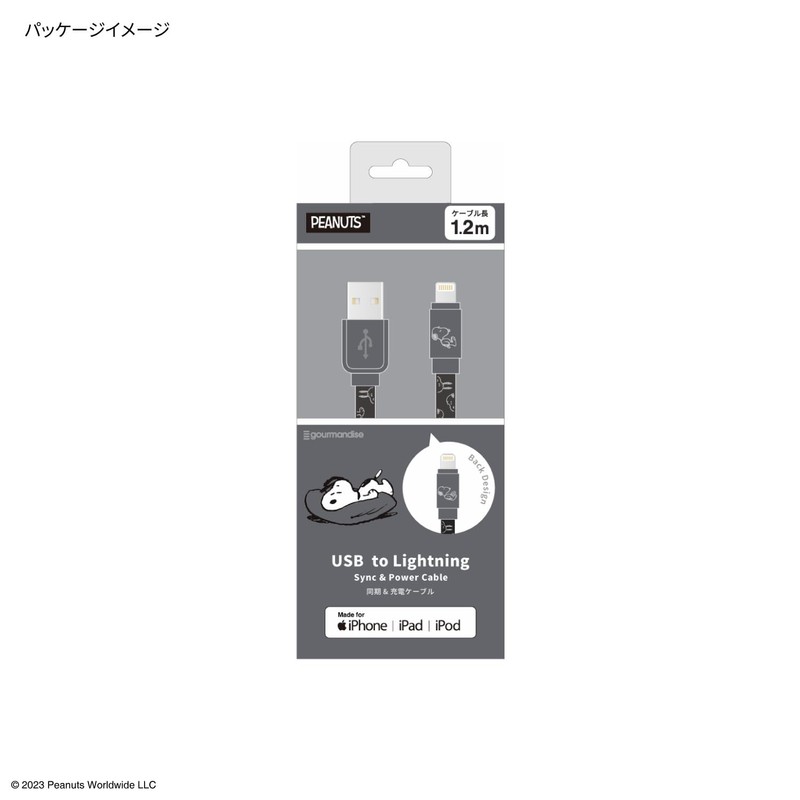 Gourmandies Peanuts Snoopy Lightning Cable Black SNG-743BK