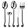 Gourmet Settings 5-Pieces Hostess Silverware-Treble Clef Collection Matte/Polished Metal Flatware Serving Set, Stainless Steel Kitchen Utensils Knife/Fork/Spoons, Dishwasher Safe