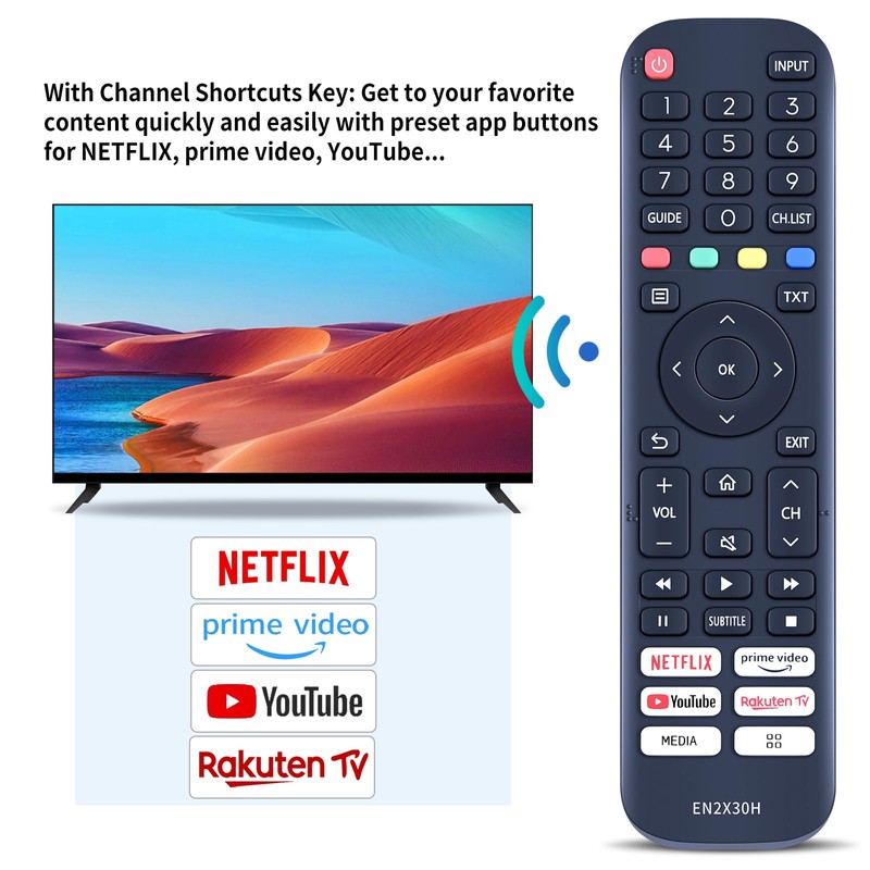 - High performance: EN2X30H remote controls are the ideal TV replacement remote control, have good transmission over long distances and precise control from a distance of 10 metres. The fastest response of your TV takes less than 0.2
