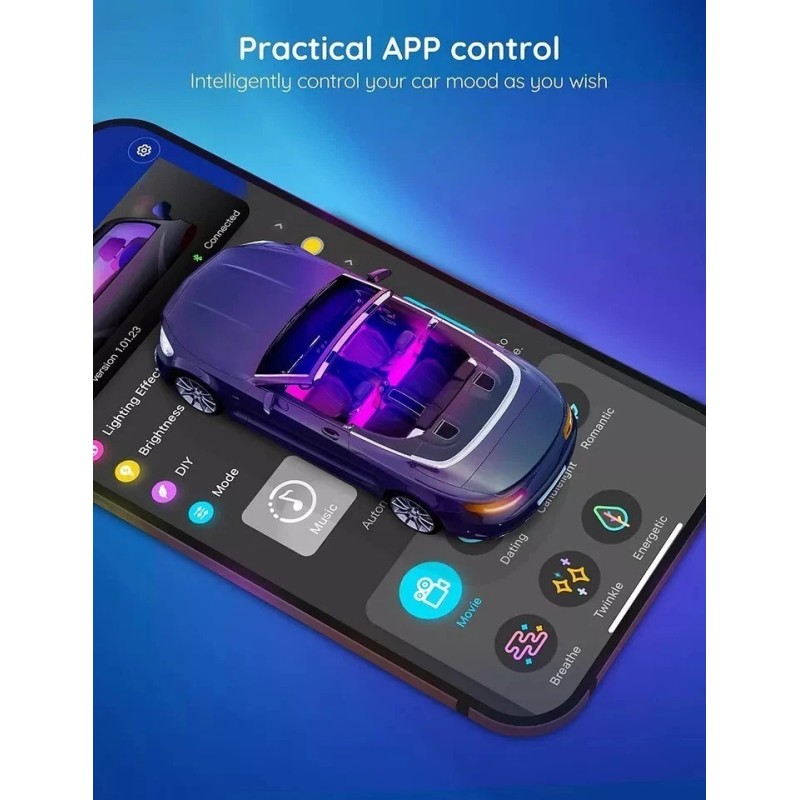 - 2 Lines Design: 2 lines design connect the 4 cae led strip lights, attaching the inside car lights easily to any car model without worrying about exposed wiring or an untidy look.